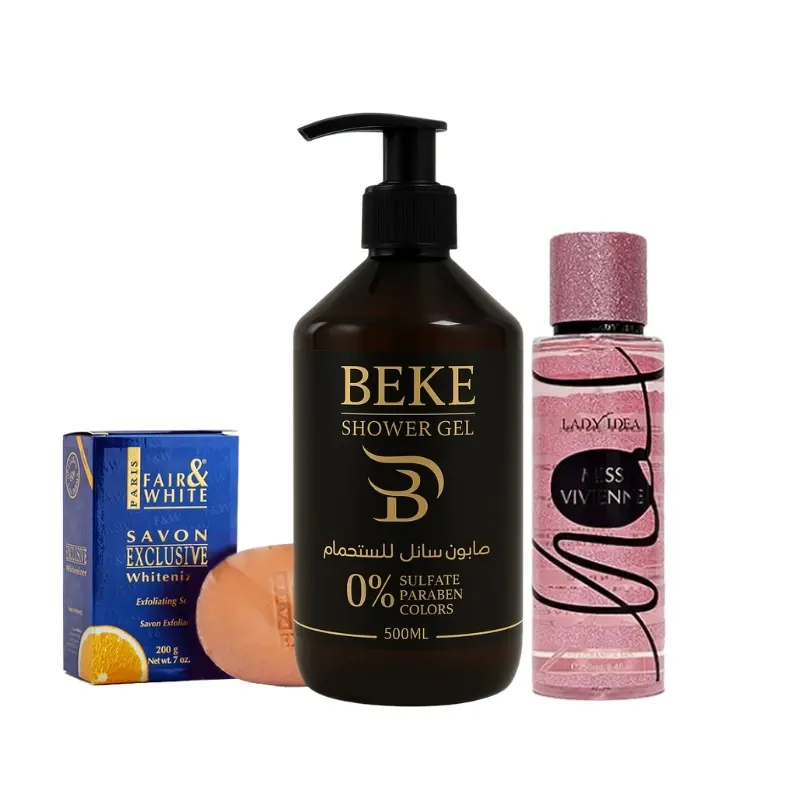 امنحي نفسك روتين عناية متكامل يجمع بين الرائحة الفاخرة، النظافة اللطيفة، وتجديد البشرة. تضم المجموعة عطراً أنثوياً راقياً، صابون استحمام لطيف، وصابونة فيتامين C للتقشير والإشراقة.