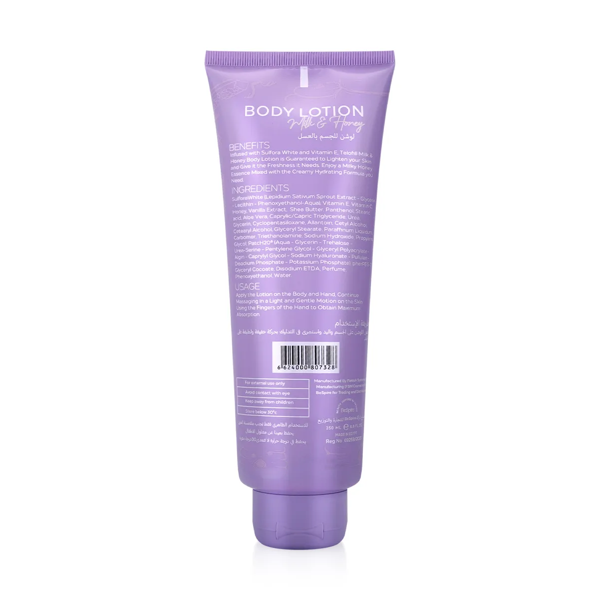 لوشن الجسم الحليب والعسل من تيلوفيل يقدم تجربة ترطيب غنية ومهدئة للبشرة بفضل مزيجه الفريد من الحليب والعسل. تحتوي تركيبته على مركب Sulfora White الذي يساعد على تفتيح البشرة ومنحها إشراقة صحية، بالإضافة إلى فيتامين E لتغذية عميقة وترطيب طويل الأمد. ينغمس هذا اللوشن الكريمي بسلاسة في البشرة ليتركها ناعمة، مغذية، ومشرقة طوال اليوم.
