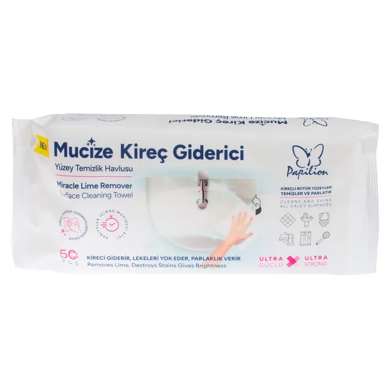 PAPILION Miracle Lime Remover Surface Cleaning Wipes – 50 pcs are specially designed to effectively remove hard lime and limescale deposits from various surfaces with ease. These wipes help clean faucets, bathrooms, showers, and kitchen surfaces, leaving them clean and shiny without the need for scrubbing or additional cleaning products.