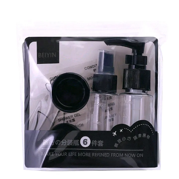 A practical set of bottles designed specifically to make it easier to carry and dispense personal care products while traveling, such as shampoo, conditioner, lotion, and body wash. It allows you to transfer your favorite products from large containers into smaller, lightweight bottles that are perfect for travel and on-the-go use.